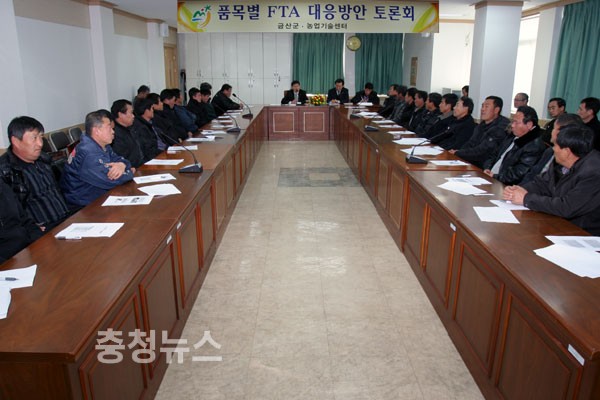 금산군(군수 박동철)은 지난달 27일부터 오는 17일까지 품목별 20개 연구회 1,200여명을 대상으로 ‘농업분야 한·미 FTA 보완대책 및 군 대응방안 토론회’를 진행하고 있다.