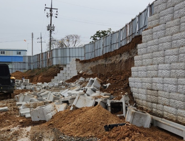 천안서북경찰서 등에 따르면 공사현장 배수로 공사 중 옹벽 보강토가 붕괴하며 근로자 3명이 흙더미에 깔렸다.