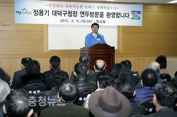 대전시 대덕구(구청장 정용기)가 구정운영의 공감대를 형성하고 주민참여의 폭 확대 등 협력과 화합의 구정을 이끌어 내기 위해 지난달 30일부터 시작한 동 연두방문이 7일 송촌평생학습도서관을 끝으로 마무리 됐다.