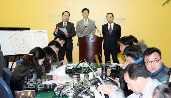 도는 안희정 도지사와 유병기 충청남도의회 의장, 관계공무원들이 참석한 가운데 8일 오전 도청기자실에서 공동 기자회견을 통해 ‘충남 상생 산업단지’ 조성계획을 발표했다.