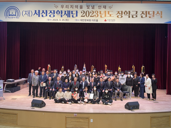 [충청뉴스 김정식 기자] (재)서산장학재단(이사장 조규선)은 지난 25일 태안문화원에서 ‘2023년도 우리지역을 빛낼 인재 장학금 전달식’을 개최했다고 26일 밝혔다.