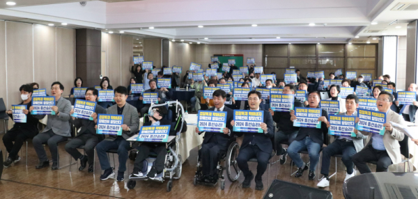 아울러 이날 참가자들은 ‘검찰독재 막아내자! 장애인이 앞장선다! 2024 총선승리’, ‘윤석열 정권 민생파탄, 굴욕외교’ 피켓과 함께 총선 승리 의지를 다졌다.