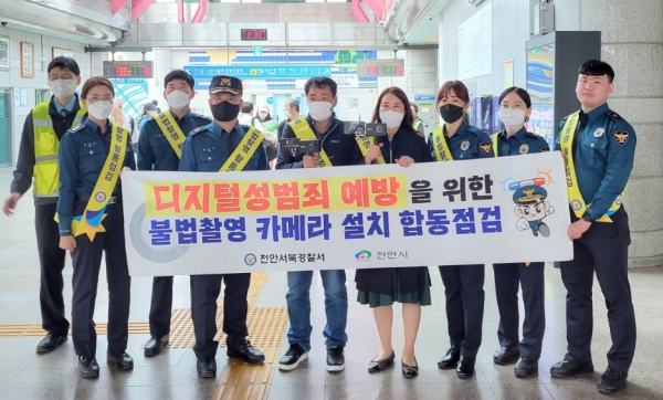 합동점검반은 적외선·영상카메라 탐지기 등을 활용해 성환역사와 불당동 소재 아름드리공원 내 공중화장실 등 15곳에 대해 불법촬영이 의심되는 흔적, 구멍 등을 면밀히 점검했다.