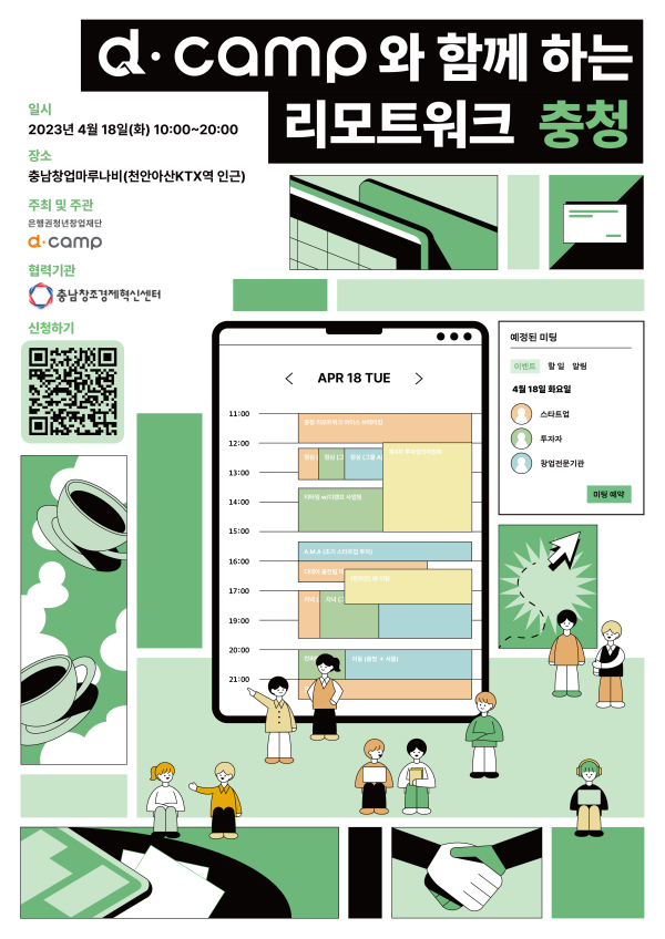 [충청뉴스 박동혁 기자] 충남창조경제혁신센터(이하 충남창경센터)는 디캠프와 함께하는 ‘리모트워크 충청(충남)‘ 을 내달 18일 진행한다고 밝혔다.