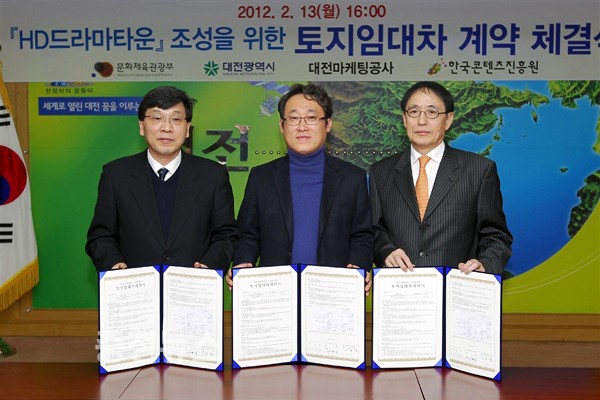 대전시(시장 염홍철)는 13일 대전을 신 한류 중심지로 이끌어갈 ‘HD(고화질)드라마타운 조성사업’을 위해 조성 부지 임대차 계약을 체결했다.