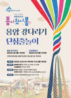 ㈔용암강다리기보존회 주관으로 열리는 이번 공개행사는 연서면 봄꽃축제와 연계해 최민호 시장의 징 울리기를 시작으로 14시부터 본격적인 용암강다리기 시연이 이어질 예정이다.