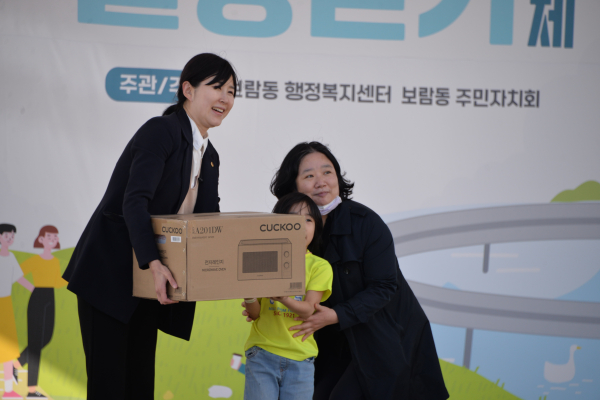 이날 유인호·이현정 세종시의회 의원과 신언송 보람동장이 행운권 추천을 화기애애하게 진행하여 잔잔한 감동을 주었다.