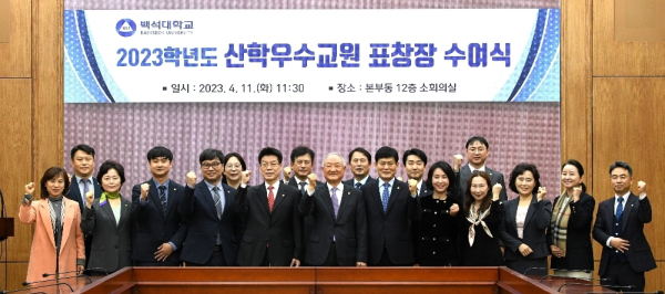 [충청뉴스 박동혁 기자] 백석대학교는 11일 교내 본부동에서 ‘2023학년도 산학우수교원 표창장 수여식’을 개최했다.