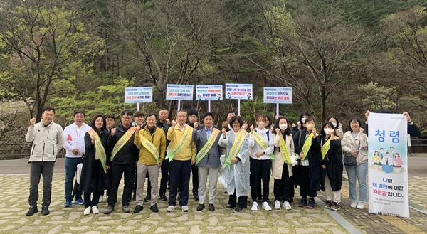 직원들은 청렴 어깨띠를 착용하고, ‘중요한 건 꺾이지 않는 청렴한 마음’, ‘대전서부교육가족 우리 모두 多가치 청렴‘ 등의 피켓을 들며 공직자로서의 청렴 실천 의지를 다짐한 후 계룡산 수통골을 일원을 함께 걸었다.