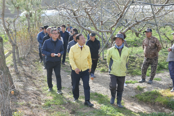 최 시장은 12일 이상저온에 따라 과수 동해를 입은 전동면 송정리 일대 복숭아 과수원 현장을 찾아 농업인을 위로하고 피해 상황을 점검했다.