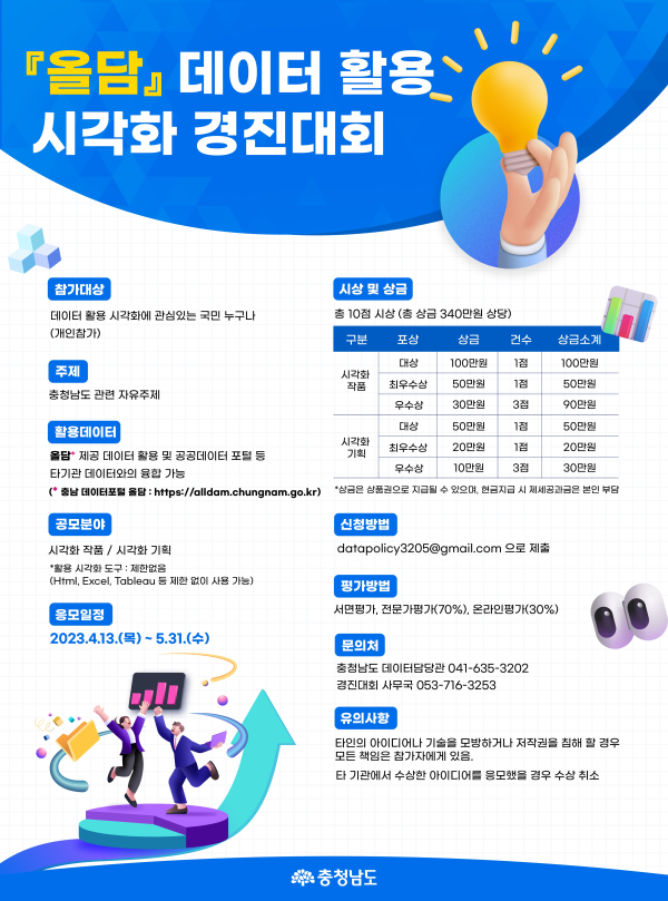 다음달 말까지 충남 데이터 활용한 시각화 작품 및 기획 아이디어 접수