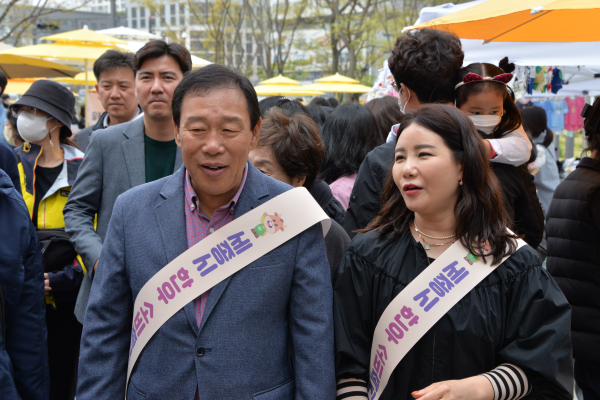 세종맘카페(cafe.naver.com/no1sejong)가 주최하는 어울림 시장은 날씨가 화창한 봄날의 토요일이기 때문인지 길거리에 늘어선 매장은 사람들로 북적였다.