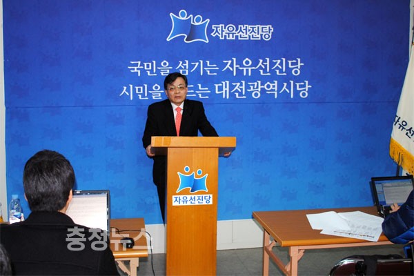 ▲ 서준원 대덕구 예비후보가 자유선진당 시당에서 기자회견을 가졌다.