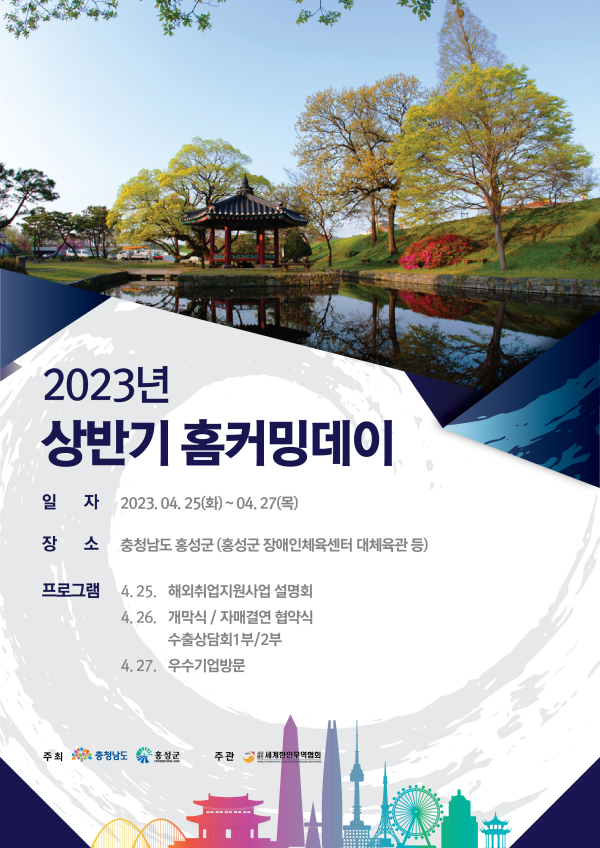 [충청뉴스 권상재 기자] 홍성군이 오는 25~27일까지 홍성군장애인스포츠센터를 비롯한 관내 일원에서‘세계한인무역협회(world-okta)’와 함께하는 홈커밍데이를 실시한다고 밝혔다.