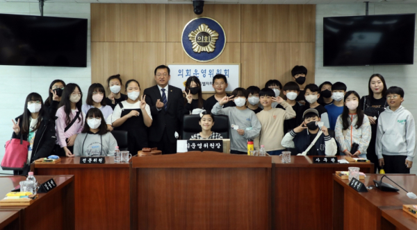 특히, 학생들은 의회운영위원회를 방문하여 의사일정, 의안, 의회 운영 관련 조례, 예산 등이 어떻게 처리되는지를 의회운영위원장인 유인호 의원에게 직접 설명을 듣고 의석에서 의안을 처리하는 체험도 했다.
