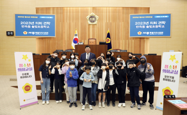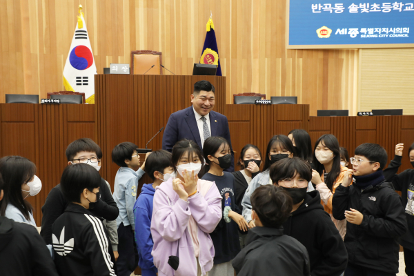 특히, 이날 해당 지역구 김영현 의원(더불어민주당, 반곡ㆍ집현·합강)은 솔빛초등학교 학생들을 견학현장 의회 본회의장 입구 앞에서 직접 맞이하였다. 더불어 학생들에게 직접 시의원의 역할과 선출방식 등 다소 어려운 지방의회 제도를 학생들의 눈높이에 맞춰 설명하는 시간을 가졌다.