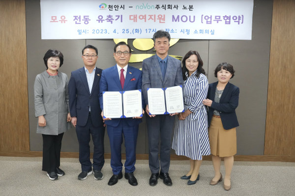 이번 협약에 따라 천안시는 전동유축기 대여 지원사업을 주식회사 노본에 위탁하고, 주식회사 노본은 전동유축기 제품 수급 관리 및 산모들의 편의와 만족도 증대 등을 위해 협조할 방침이다.