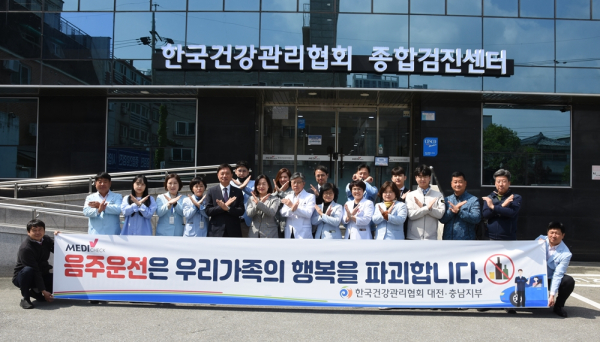 [충청뉴스 이성현 기자] 한국건강관리협회 대전충남지부(본부장 문원주, 이하 건협)는 26일 본관에서 음주운전 근절 캠페인을 펼쳤다.