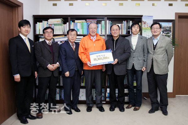 한남대학교 컴퓨터공학과 교수 8명은 6일 오전 9시 30분 교내 총장실에서 3,200만원의 학과장학기금 약정서를 김형태 총장에게 전달했다.