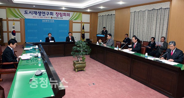 대전광역시의회(의장 이상태) ‘도시재생연구회’가 7일 대전시의회 4층 대회의실에서 창립회의를 열고 회장에 남진근 의원, 간사 권중순 의원을 각각 선출하고 공식 출범했으며 회원으로는 박종선·이희재·한근수·김창규 의원으로 구성했다.