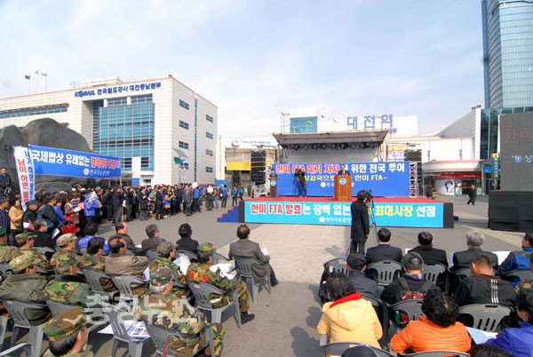 한국자유총연맹은 8일 오후 2시 대전역 광장에서 부산·대구에 이어 3번째로 ‘한·미 FTA 폐기 저지를 위한 전국 투어’를 개최했다.