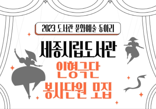 [충청뉴스 최형순 기자] 세종시립도서관(관장 조설희)이 ‘인형극 동아리’를 신설하고, 만 19세 이상 세종 시민을 대상으로 8일부터 회원 15명을 모집한다.