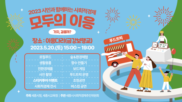 세종시가 주최하고 세종시 사회적경제 추진위원회가 주관하는 세종시 사회적경제 ‘모두의 이응’ 행사가 오는 20일15시부터 이응다리에서 열린다.