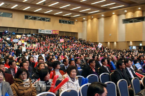 한편, 이날 행사는 시종일관 2000여명의 당원들과 지지자들의 뜨거운 열기로 진행됐지만, 염홍철 대전시장을 비롯한 한현택 동구청장,박용갑 중구청장,박환용 서구청장 유병기 충남도의회의장, 이상태 대전시의회의장을 비롯한 시도의원 등이 대거 동참했다.