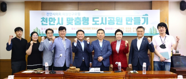 [충청뉴스 박동혁 기자] 충남 천안시의회는 ‘천안시 맞춤형 도시공원 만들기(김영한 대표의원, 권오중·김철환·김행금·배성민·유수희·유영진 의원)’ 연구모임이 지난 8일 건설교통위원회 회의실에서 2차 간담회를 개최했다고 밝혔다.