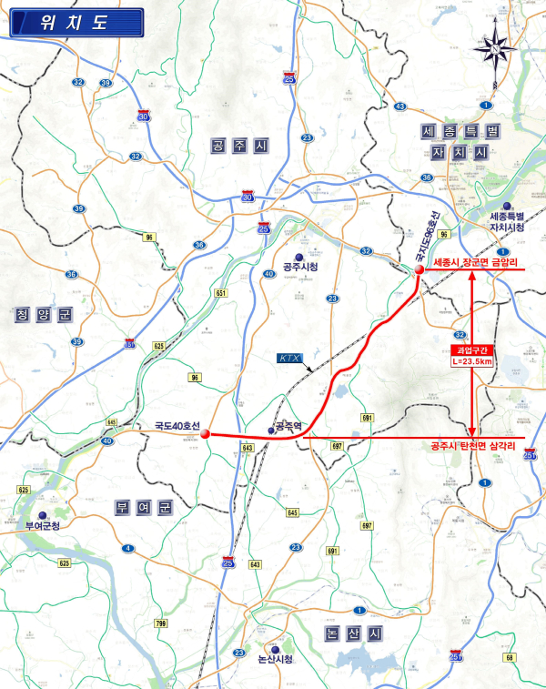 또 공주∼부여 국도 40호(공주시 이인면 삼각리)와 공주∼논산 국도 23호(공주시 계룡면 월곡리)를 동서축으로 연결, 국도 간 도로 이용 효율성도 높아질 전망이다.