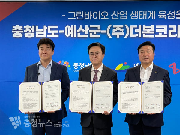 협약에 따라 도와 예산군, 더본코리아는 ▲그린바이오 산업 생태계 육성을 위한 사업 협력 ▲그린바이오 벤처 창업 지원 ▲국제 컨퍼런스 및 세미나·학술대회 공동개최 ▲예산 늘해랑 프로젝트에 협력한다.