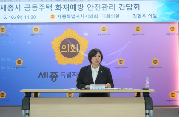 [충청뉴스 최형순 기자] 세종특별자치시의회 김현옥 의원(새롬동, 더불어민주당)은 10일 의회청사 대회의실에서 ‘공동주택 화재예방과 안전문화 활동 지원에 관한 조례’ 제정을 위한 간담회를 열었다.