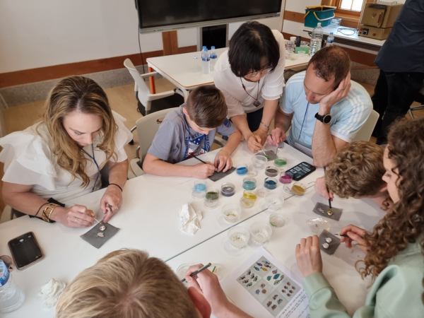 칠보 채색 실습을 하고 있는 주한 미군 가족들