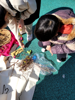 ‘기다림, 어울림, 함께하는 숲’ 활동은 산림청, 복권위원회, 한국 산림진흥원의 녹색자금공모 지원으로, 사회적협동조합 ‘꾸물’의 숲 해설 전문 강사와 함께 자연을 탐색하고 자연물을 활용하여 놀이하는 프로그램이다.