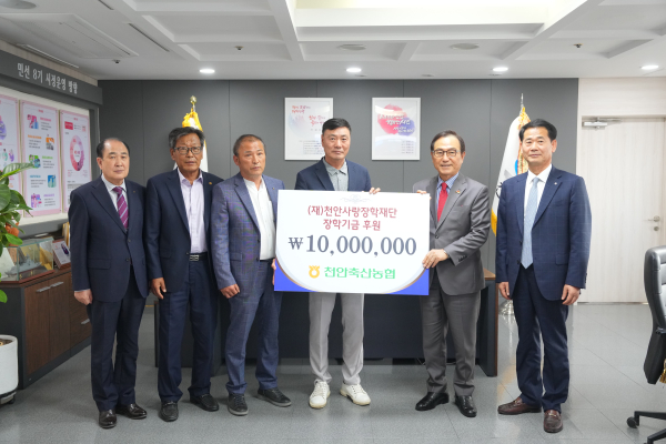[충청뉴스 박동혁 기자] 천안축산농협은 22일 지역 우수인재 육성 및 어려운 학생들을 위해 장학기금 1,000만원을 천안사랑장학재단에 기부했다.