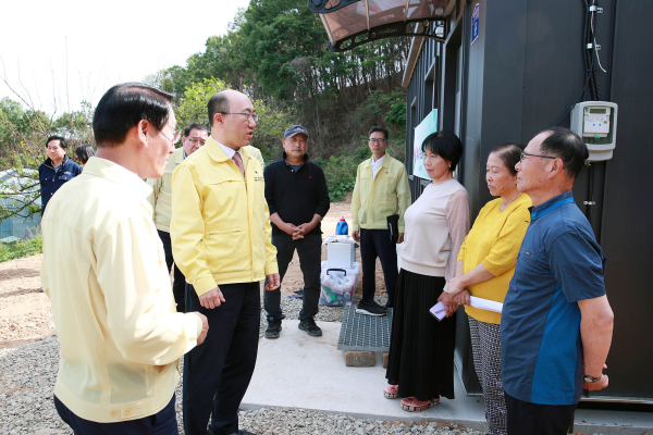 김기영 행정부지사는 이용록 홍성군수 등과 함께 홍성군 서부면을 찾아 조립식 주택 입주 이재민을 위로하고 재난지원금 및 기부금 지급 등 산불 피해 복구 지원계획을 설명했다