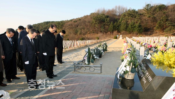 김종성 교육감은 26일 오전 7시30분 본청 간부들과 함께 천안함 사태 2주기를 맞아 국립대전현충원 천안함 46인 용사 묘역을 찾아 참배했다.