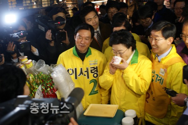 또한 충남도청사와 관련해 한 대표는 “근현대사박물관 짓겠다고 약속을 했었지만 약속 파기하고 말을 바꿨다. 충청도민을 무시하고 함부로 말했다”며 “말 바꾸는 대통령으로서 참으로 한탄을 넘어서 하면 안되는 일을 충청도민에게 했다고 생각한다”고 MB정권의 충청권 공약 불이행을 부각시켰다.