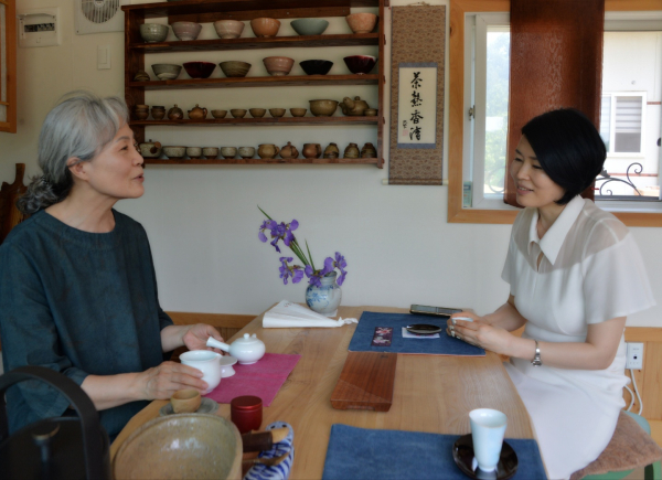 - 윤정해 다도 선생과 시낭송가 변규리 시놀이터 대표 만남