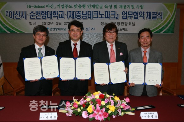 이를 위해 시는 27일 순천향대, 충남테크노파크, 충남디스플레이 산업기업협의회와 기업주도 맞춤형 인재육성 사업을 위한 협약식을 가졌다.