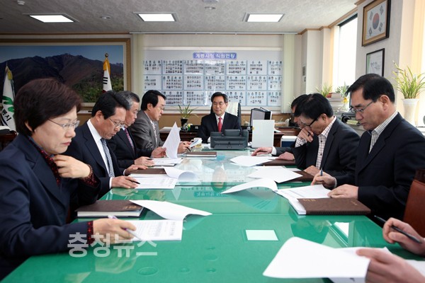 이기원 계룡시장은 지난 2일 오전 10시 30분 시청 집무실에서 ‘2013년도 정부예산 확보를 위한 추진상황 보고회’를 통하여 그동안 중앙부처 및 도방문등 추진상황에 대해 중간점검을 하는 시간을 가졌다.