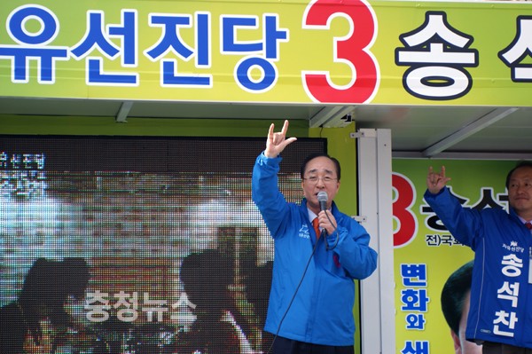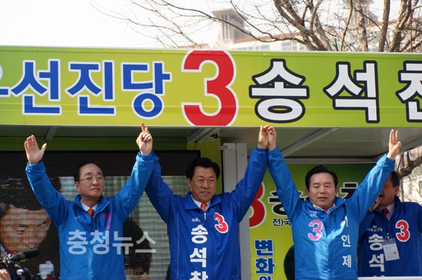 아울러 “유성장터를 비롯해 구암동, 봉명동 지역의 주차난 해소를 위해 주차빌딩을 건립해 유성구민들이 살기좋은 환경을 만들 것”이라며 “모든 것을 떠나 대전충청을 지킬수있는 자유선진당 기호 3번 송석찬을 뽑아달라, 자유선진당을 지켜주시고 자유선진당 후보들에게 표를 몰아 달라”고 목소리를 높였다.