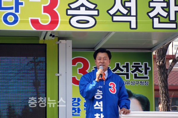 또 “송석찬을 국회의원 만들어 놓으면 편히 주무실 수 있다. 유성구민들, 가려운데 긁어드릴 수 있다”며 “정당을 믿으면 안 된다. 오직 인물을 보고 송석찬을 당선시켜 달라”고 당부했다.