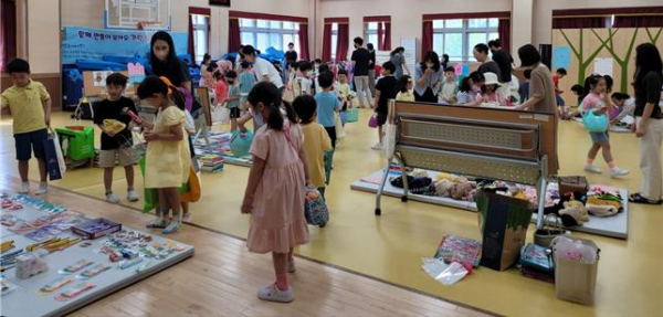 유아, 교사, 학부모 3주체는 함께 사용하지 않는 물건을 나누고, 바꿔쓰는 활동을 통해 합리적인 경제생활의 즐거움과 자원의 재활용을 실천했다.