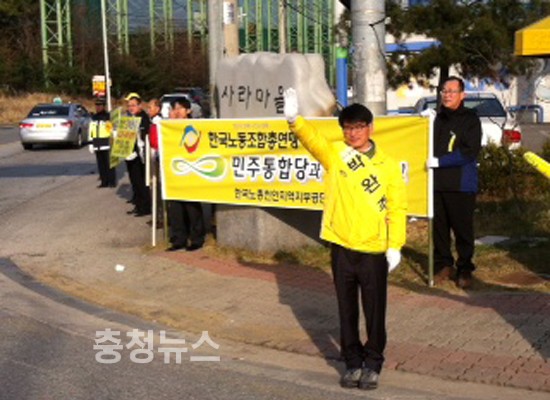 한국노총 충남본부가 지난 5일 민주통합당 충남도당과 정책협약을 체결 한데 이어 본격적인 지지유세전에 돌입했다.