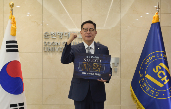 [충청뉴스 박동혁 기자] 김승우 순천향대학교 총장이 마약 범죄를 예방하기 위한 ‘NO EXIT’ 캠페인에 동참했다.