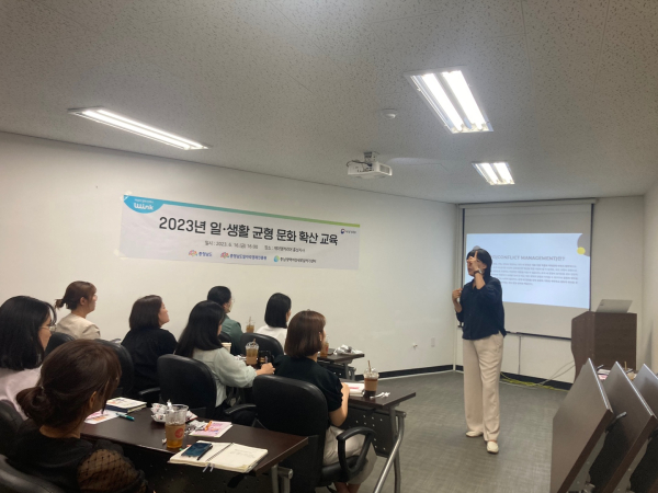 충남광역여성새로일하기센터 관계자는 “이번 교육을 통해 일·생활 균형을 위한 근무환경과 방식에 대한 이해도를 높여 근로자의 업무 능률 향상에 도움이 되길 바란다”며 “조직 내 의사소통 개선을 통해 업무 만족도 증대와 여성 근로자의 고용유지를 제고할 수 있는 계기가 되길 바란다”고 말했다.