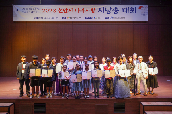 [충청뉴스 박동혁 기자] 충남 천안시는 올해 처음 개최한 ‘2023 천안시 나라사랑 시낭송 대회’가 지난 24일 천안어린이꿈누리터 꿈누리대공연장에서 개최됐다고 26일 밝혔다.