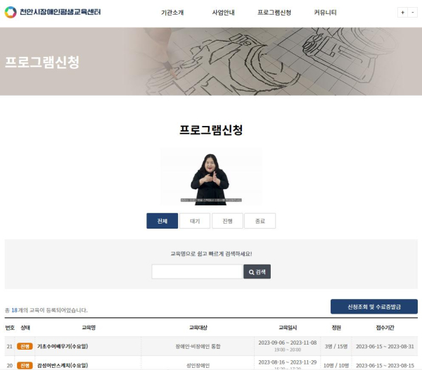 천안시장애인평생교육센터 게시판을 설명하는 수어 영상/천안시 제공