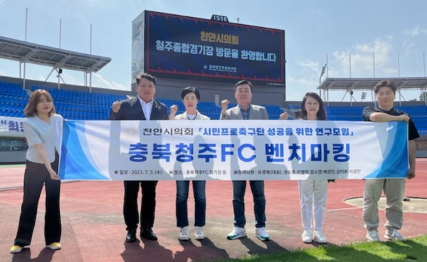 [충청뉴스 박동혁 기자] 천안시의회 ‘시민프로축구단 성공을 위한 연구모임’은 지난 5일 벤치마킹을 위해 충북청주FC를 방문했다.